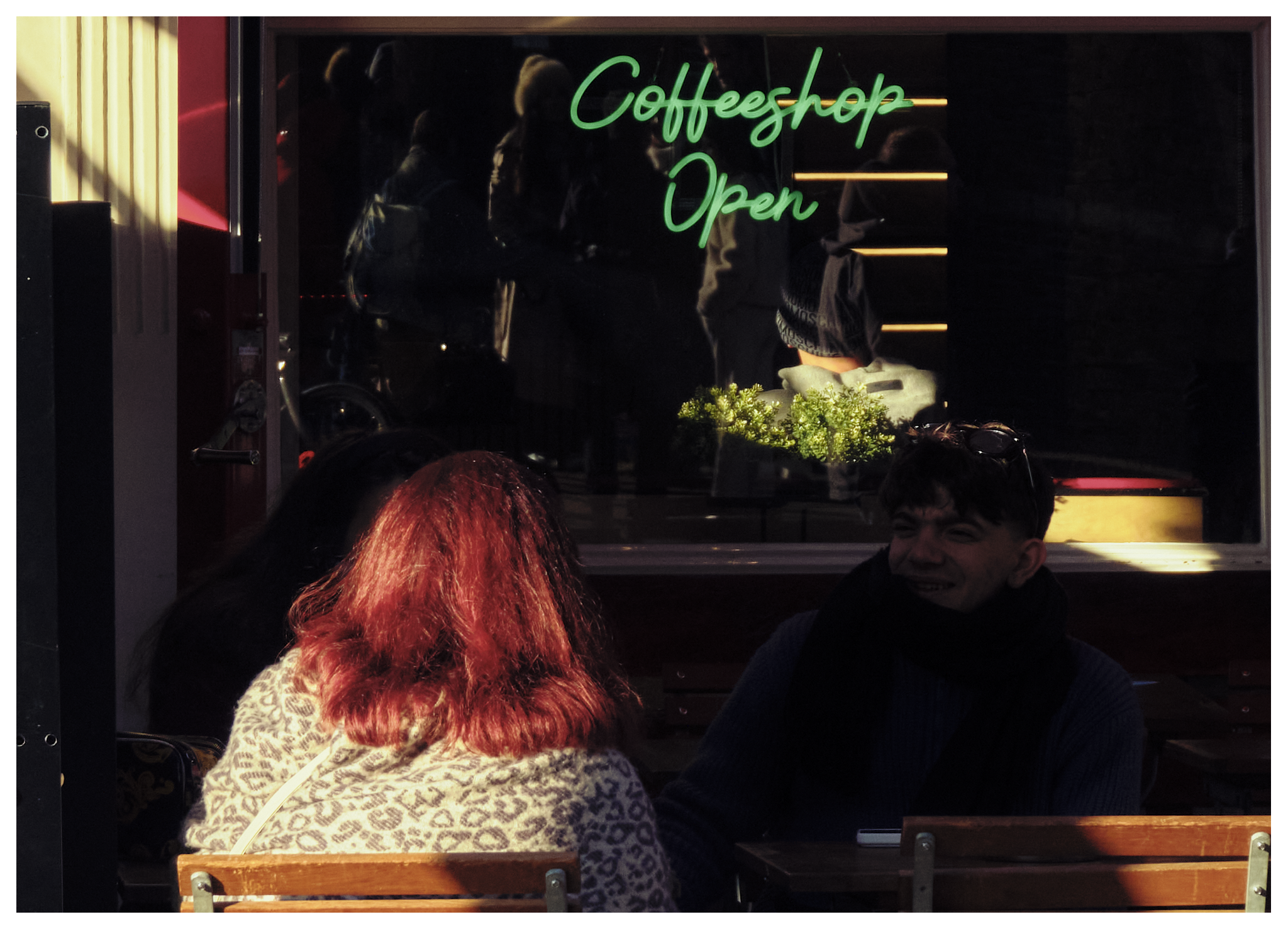 Eind november begin december, op sommige dagen is het vrij zonnig. Later is het een aaneenschakeling van grijze natte dagen. Tot die tijd genieten de mensen die werken in Amsterdam en de de bezoekers van de laatste zonnestralen die 2025 nog lijkt te bieden.