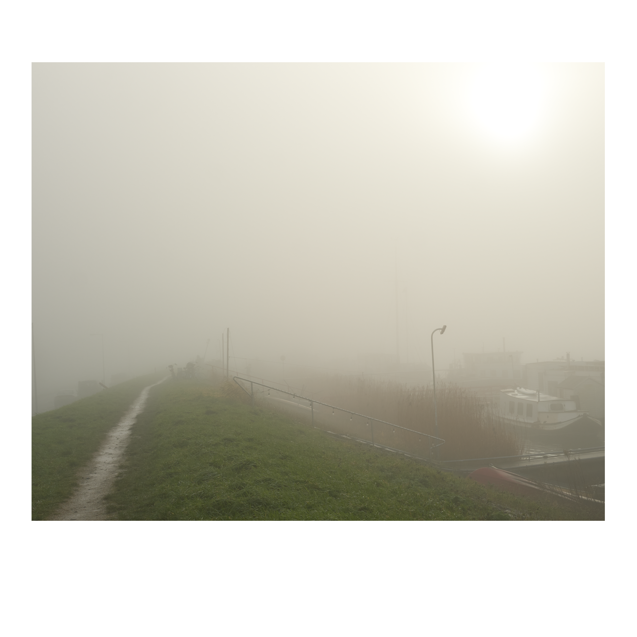 Op de tweede dag van het jaar 2021. Net ten noorden van Amsterdam. Een ritje buiten de stad er is nagenoeg niets te zien door de dikke mist die er over de velden en het kanaal hangt.
