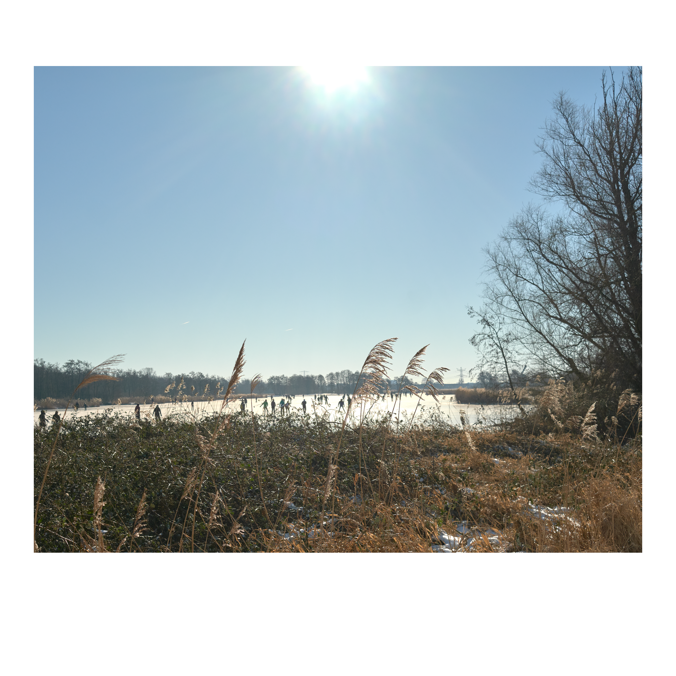 Een korte periode van vorst en iedereen zoekt de mooiste stukjes ijs op om te schaatsen, zo ook in het Twiske in Oostzaan net boven Amsterdam. Het is nog halverwege de ochtend en nog niet zo druk rondom en op de plassen. Een heerlijke zondagochtend in de sneeuw.