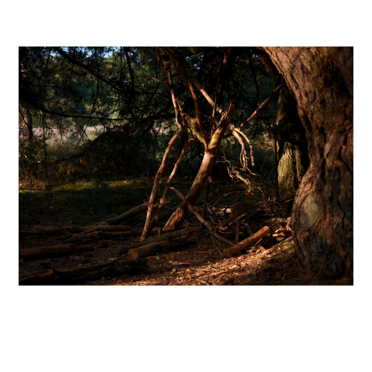 Afgevallen takken lijken op achtergelaten gereedschap na een dag werken, een boomhutje zou overal tussen de takken kunnen staan, en wie ziet eigenlijk nog het verschil tussen het groen van Otterlo en dat van Amsterdam?
